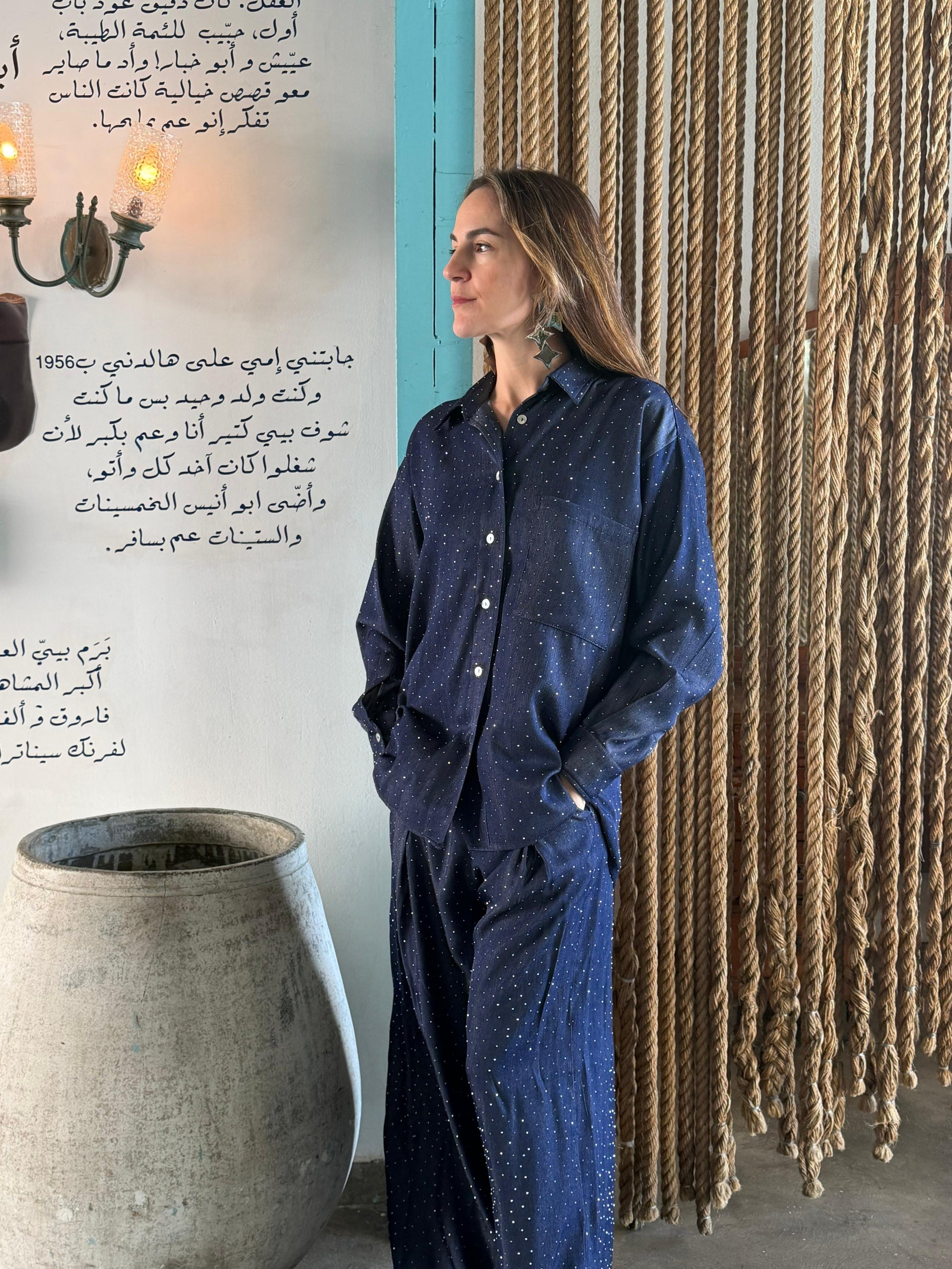 Perla Palazzo Set is a chic and comfortable matching set featuring a flowy palazzo fit, available in Grey, Light Blue, and Dark Blue.