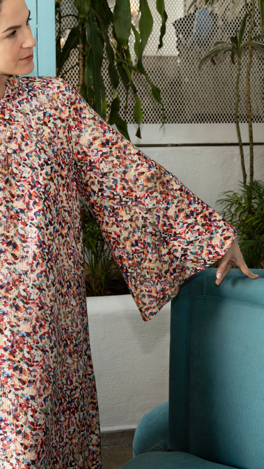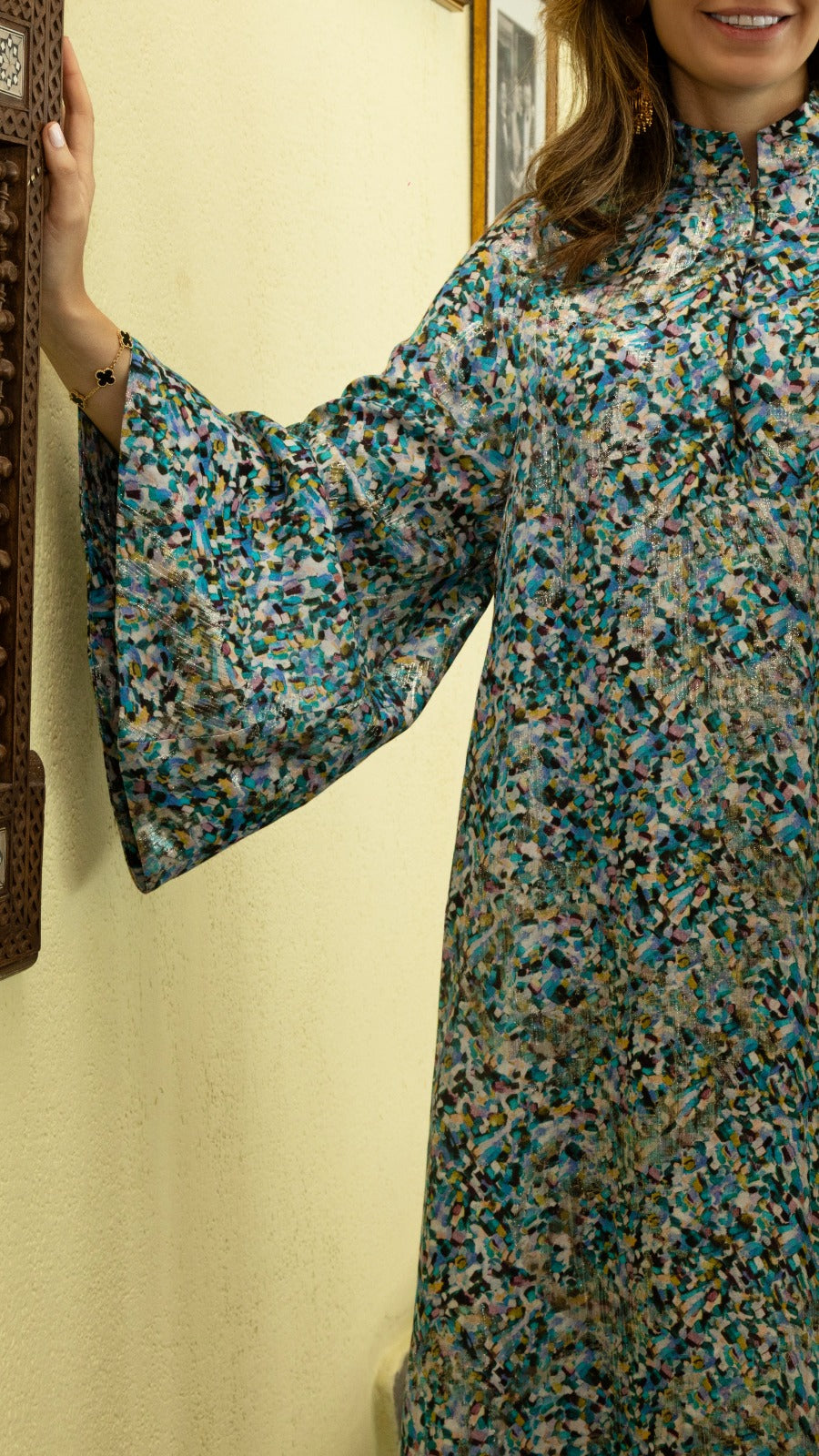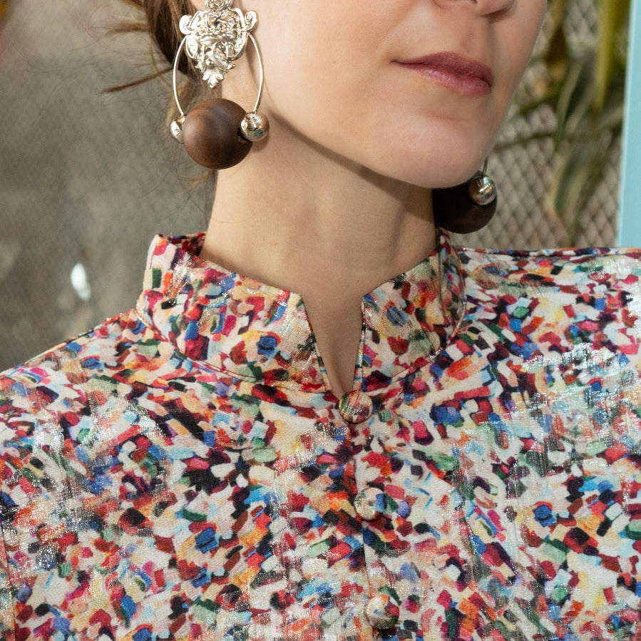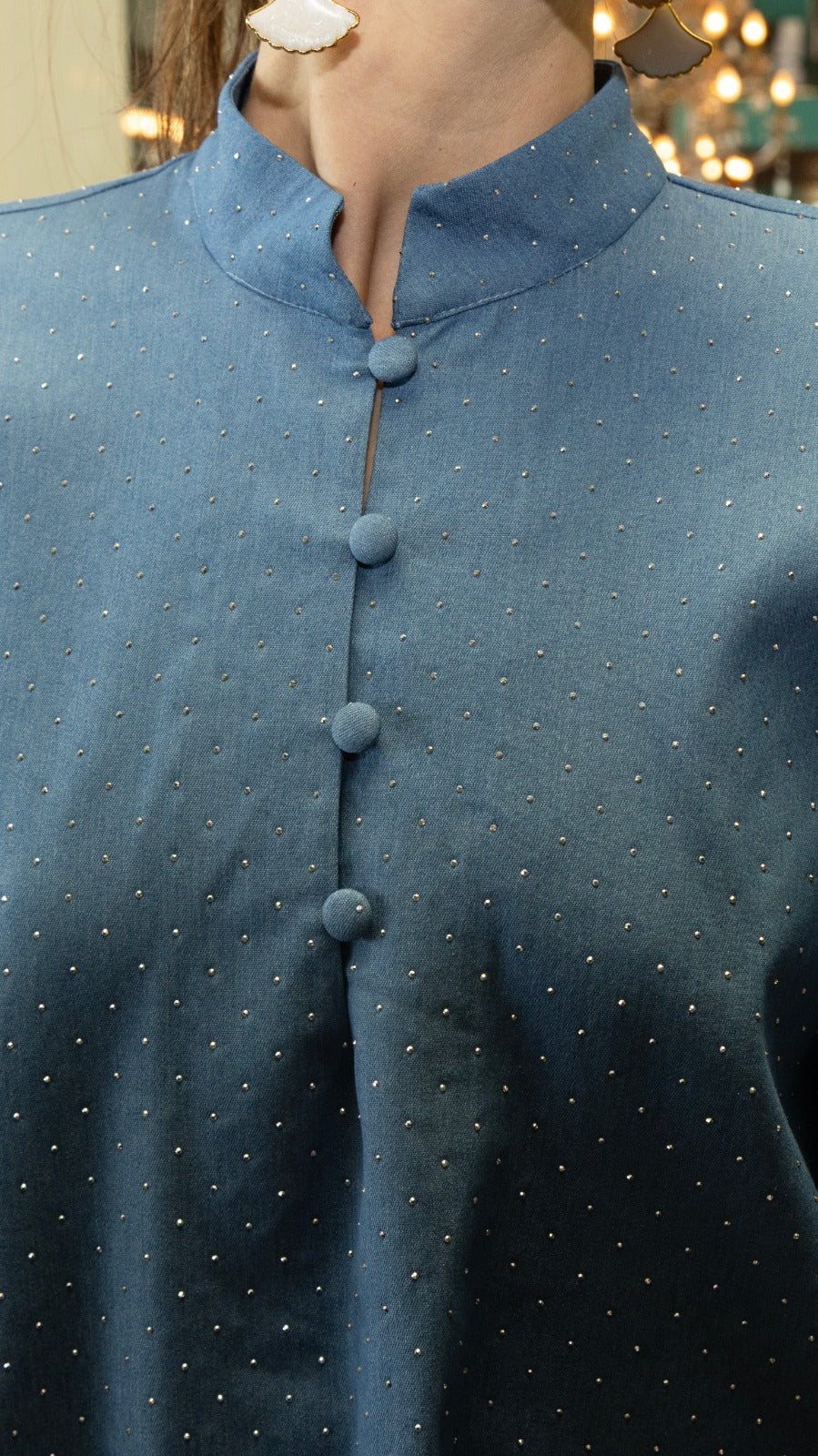 Razane is a one-size statement piece available in Jeans Glitter, Blue, and Pink/Red.